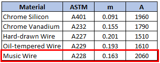For spring materials, the minimum tensile strength for common spring steels can be determined from: