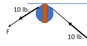 Since the 20 lb weight acts downwards, two (2) 10 lb forces must counter act upwards. Next, draw another FBD at the second pulley.