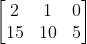 $$$\begin{bmatrix}2 & 15\\ 1 & 10\\ 0 & 5\end{bmatrix}$$$